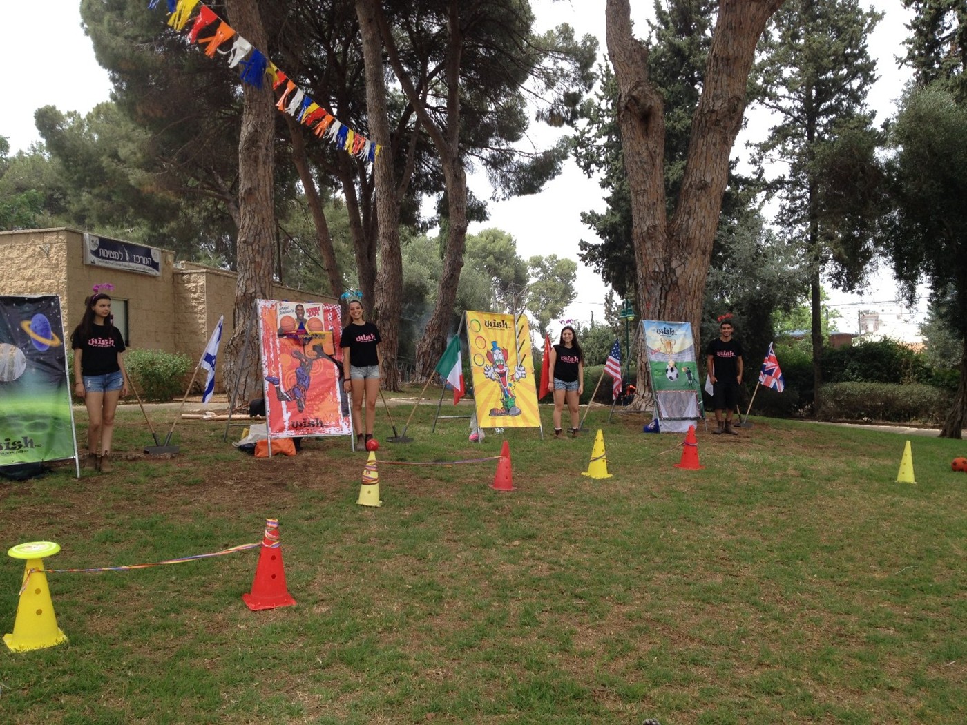 יפרסו מספר עמדות משחק ענקיות 1.70*1.50 ובניהן דגלי המדינות כאשר כל מס' עמדות קשורות למדינה מסוימת בניהן ספרד- כדורגל, ארה"ב - כדורסל אוסטרליה-קפיצת שקים ועוד כמו בתוכנית הטלויזיה יפגשו הילדים כרטיסים כגון צומת,קיצור דרך ומחסום שיקחו אותם למשימות מגוונות ומאתגרות השחלת טבעות,צלחת מעופפת,הפלת פחיות,באולינג,משיכת חבל שיווי משקל ועוד.