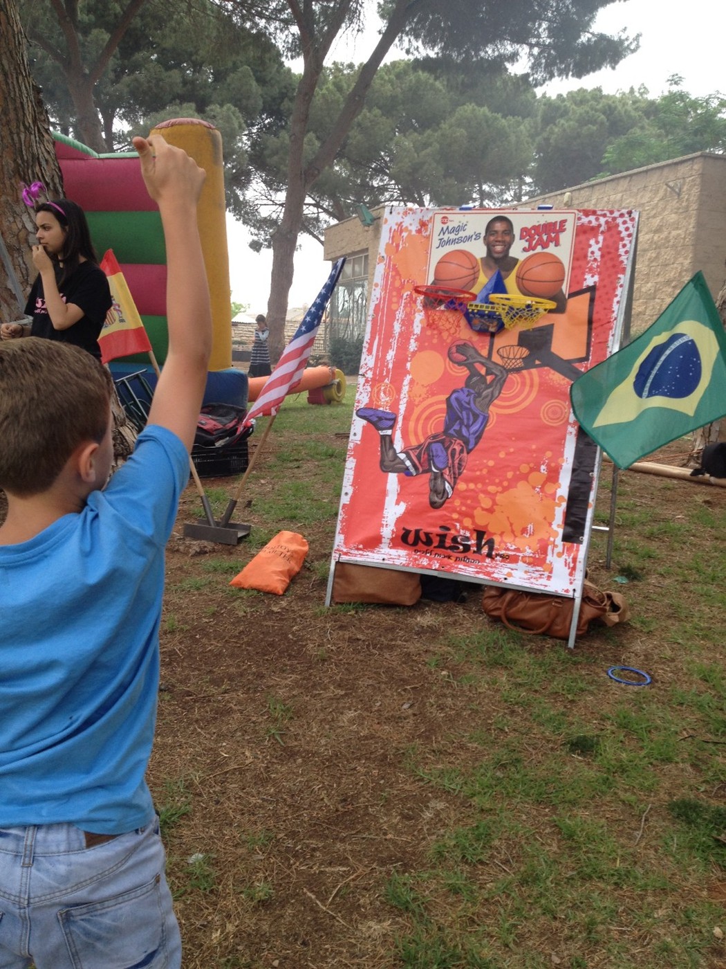 יפרסו מספר עמדות משחק ענקיות 1.70*1.50 ובניהן דגלי המדינות כאשר כל מס' עמדות קשורות למדינה מסוימת בניהן ספרד- כדורגל, ארה"ב - כדורסל אוסטרליה-קפיצת שקים ועוד כמו בתוכנית הטלויזיה יפגשו הילדים כרטיסים כגון צומת,קיצור דרך ומחסום שיקחו אותם למשימות מגוונות ומאתגרות השחלת טבעות,צלחת מעופפת,הפלת פחיות,באולינג,משיכת חבל שיווי משקל ועוד.